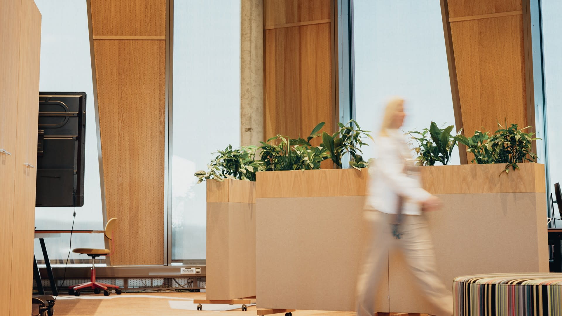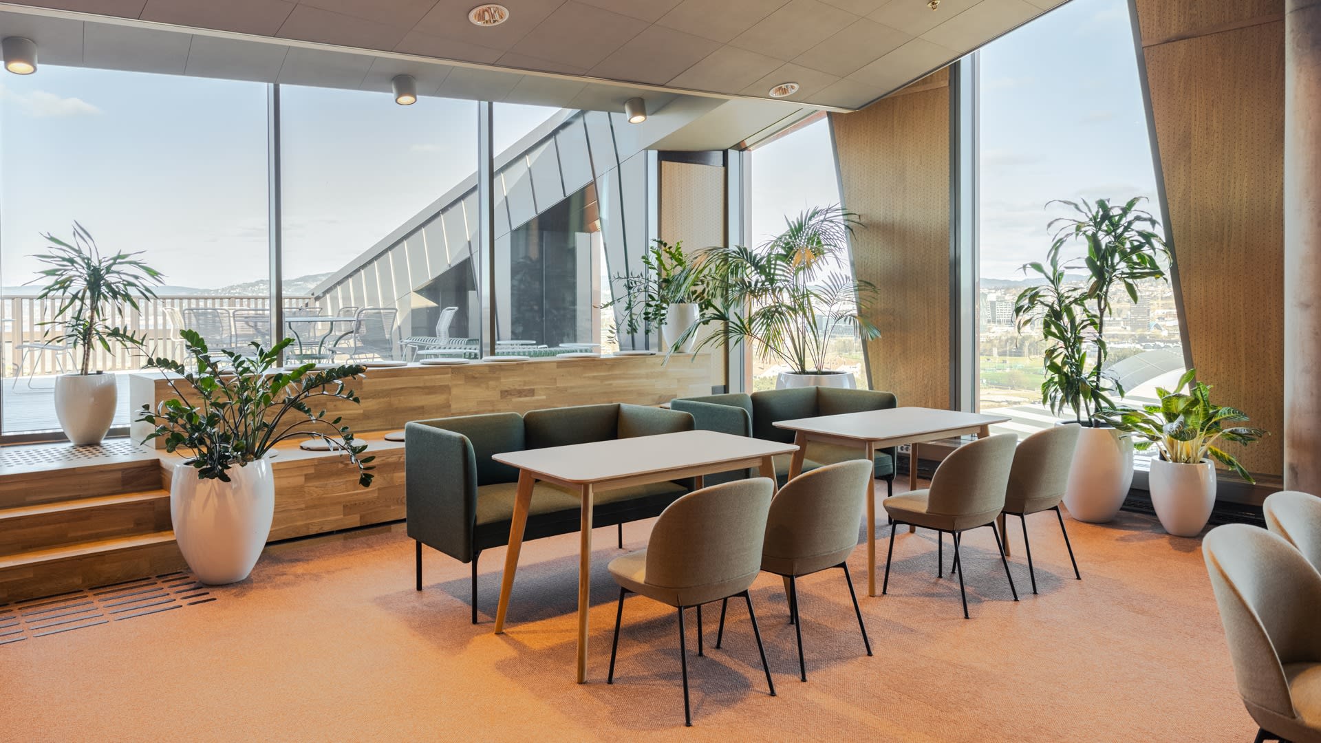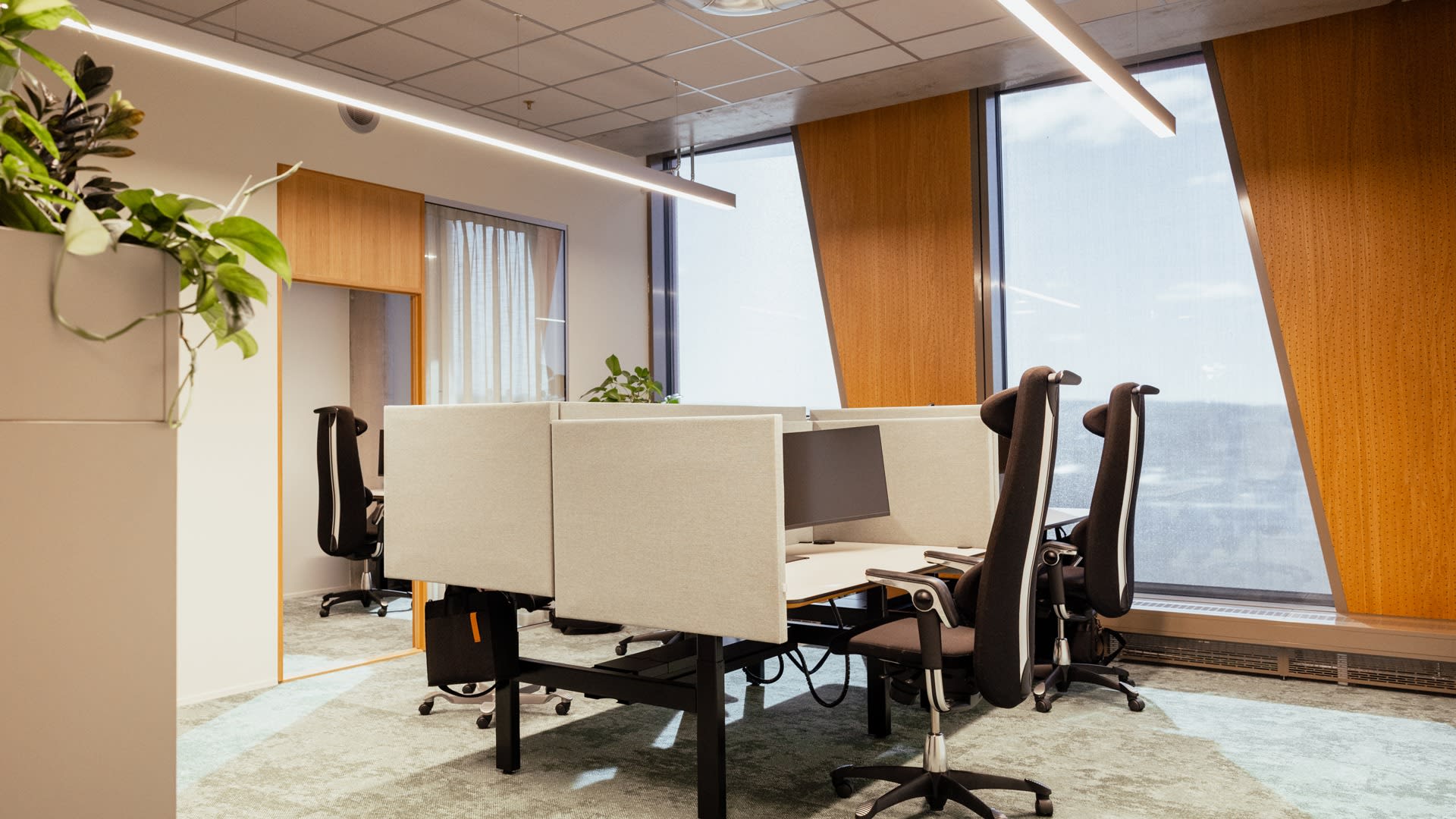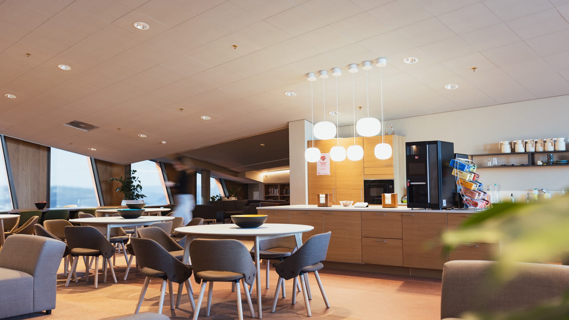 -Først og fremst er vi jo stolte av de nye lokalene våre, det er en eksepsjonell takhøyde i våre arealer, som gir oss en følelse av mye luft, til tross for at kvadratmeterne er utnyttet effektivt. Lyse og freshe lokaler med tidsriktig interiørdesign i gode materialer skaper økt trivsel hos medarbeiderne. At bygget er bærekraftig, det var viktig for oss, og at man har skapt et fint interiør, også ved gjenbruk av møbler. Personalrestauranten har et rikt utvalg, det settes pris på, og treningsrommet blir brukt av mange. Også små ting som bordtennisbord, vet jeg mange ansatte verdsetter, det gir en aktiv pause og rom for gode, uformelle samtaler, og et kjærkomment lite avbrekk i hverdagen. Samhandlingsarealene våre har også skapt en ny dynamikk og samarbeid på tvers av funksjoner.